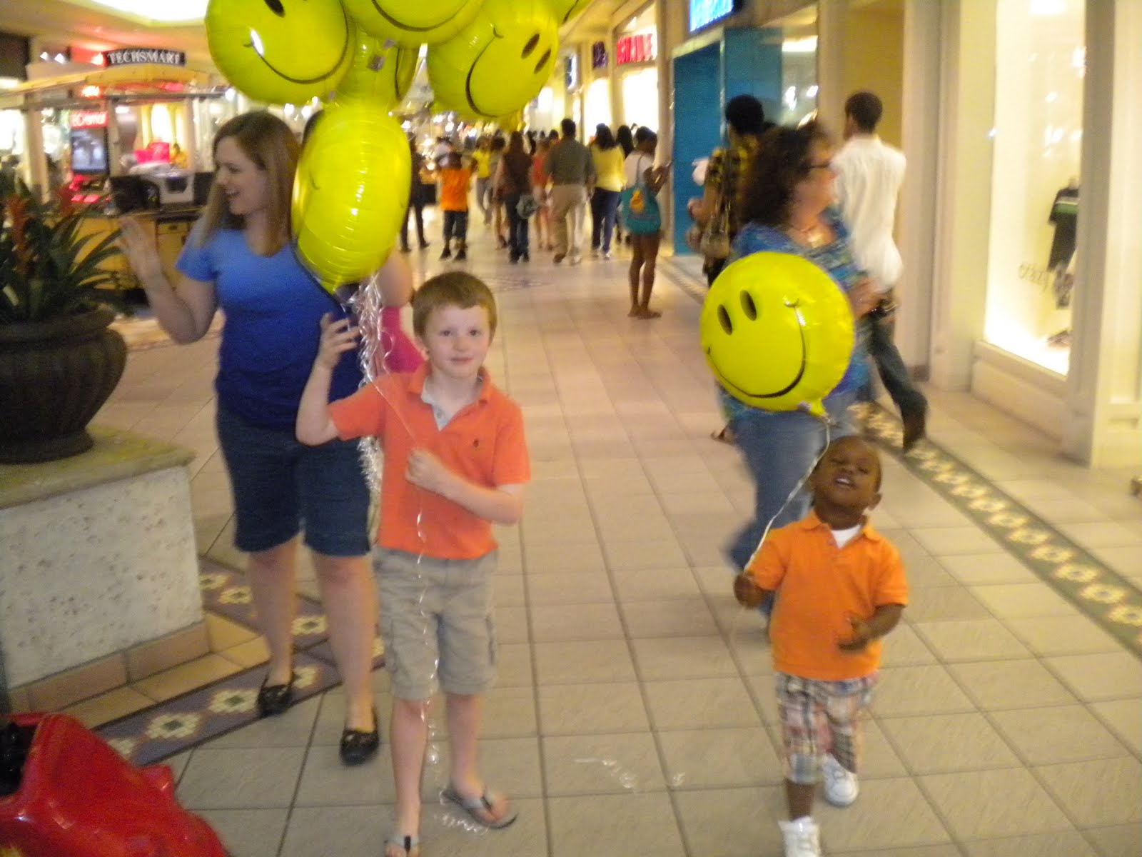 27) Went to the mall and handed out balloons to kids...and a few adults who were young at heart! One of my favorite parts of the day. As we were getting out of the car to head into the mall, a woman stopped us and asked if she could have one for her son. After telling her our "Happy Day" mission, she told us that she was the manager of a store inside, and that she had two very deserving girls who worked there, so that was our first stop inside. The girls were so excited. It tickles me just how much a balloon can make your day.