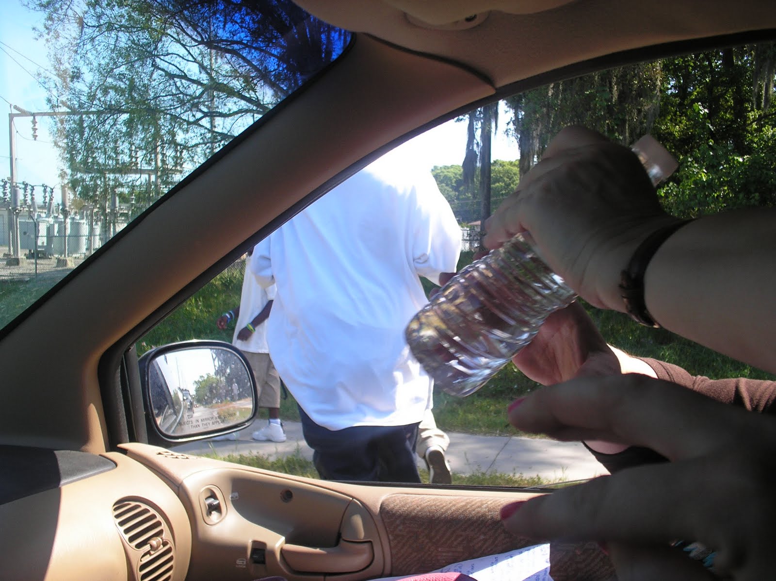 (*) As we drove to our next destination, we would stop when we saw tired bikers, pedestrians...offered them water too.