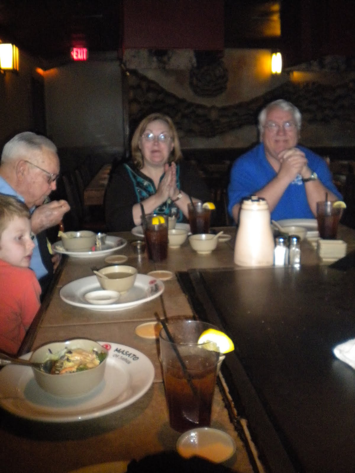 (*)Enjoyed a wonderful meal with family and friends at Musato's Japanese Restaurant. This has been an April birthday tradition that has been going on for at least 18 years straight. Maybe more...we have bad memories, and can't remember the exact year when we started. But it was wonderful to keep the tradition alive. Mom drove Grandad home to fill his medicines, but Mark the hubby and Joy the friend joined us in our Happy day quest!