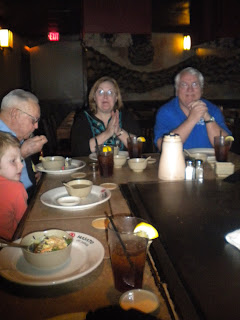 (*) Two random things that happened... After we said the blessing for our meal, we opened our eyes, and there was an old man standing at our table. He reached into his pocket, and handed James and Bella each a one dollar bill!!! How funny is that? On "Happy Day" my kids get there own happy day random act of kindness from a stranger. Love it! Also, my mom paid for all of our meals, plus had the waitress sing my Happy Birthday...embarrassing!!! I didn't even know they did that!